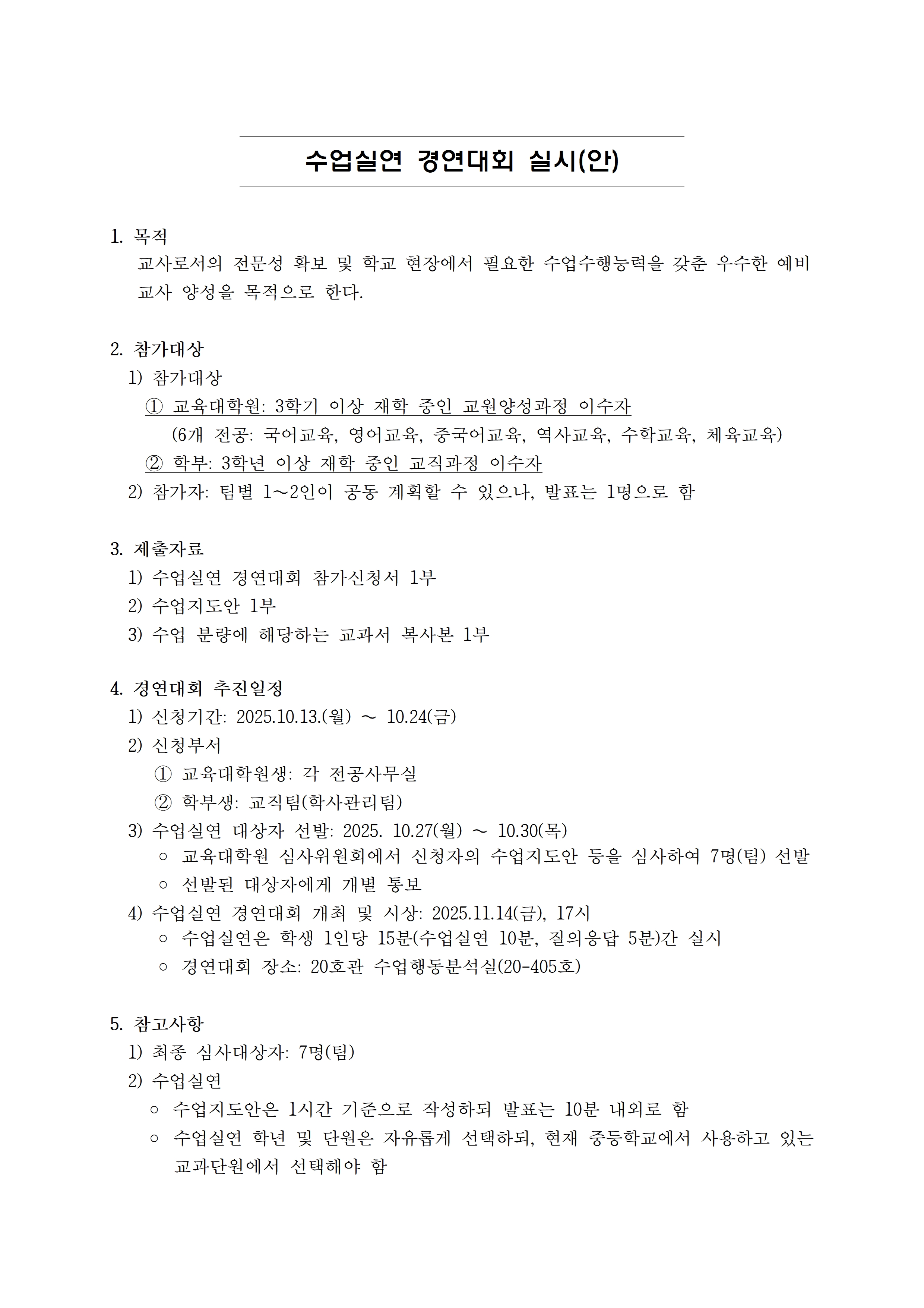 [교직]2025학년도 수업실연 경연대회 안내